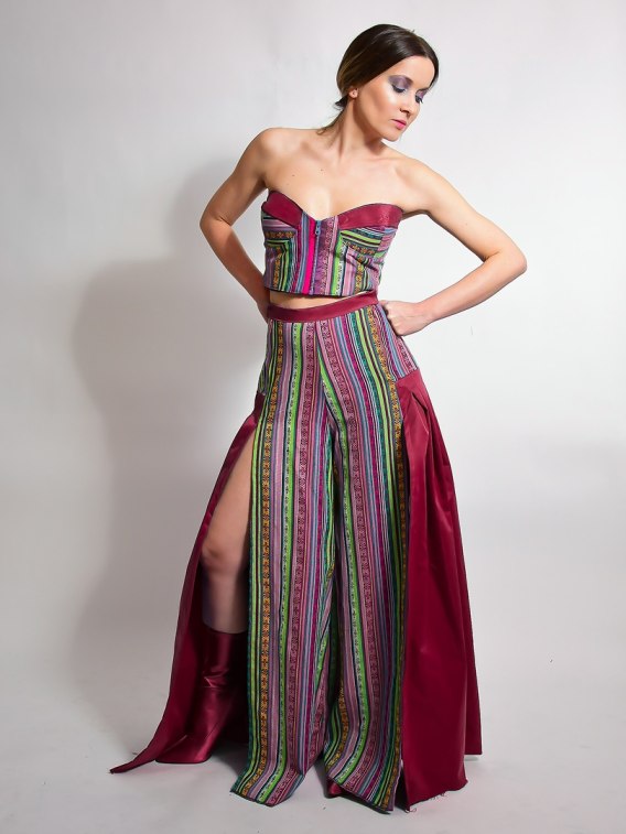 • SPODNIE KOLOROWE Z PLISAMI BORDO