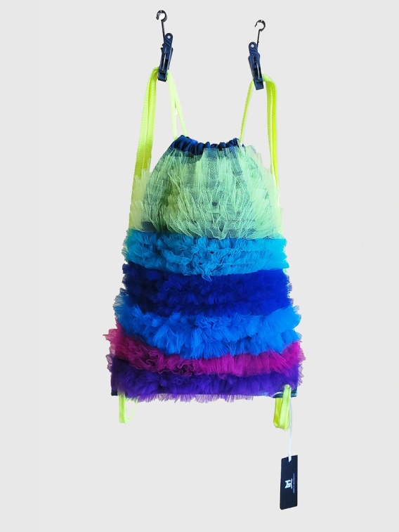 Zewnętrzna strona torby charakteryzuje się kolorową strukturą stworzoną z tiulu. Strona przylegająca do pleców zaś wykonana jest z tkaniny żakardowej. Torba nawet przy pełnym obciążeniu zachowuje swój kształt i wygląd, co sprawia, że jest niezawodnym towarzyszem podczas codziennych aktywności. Torba posiada podszewkę. Dostępna jest w wielu wariantach kolorystycznych. Jest połączeniem estetyki z funkcjonalnością, które sprawiają że to nie tylko praktyczny dodatek, ale także wyrafinowany element stylizacji.